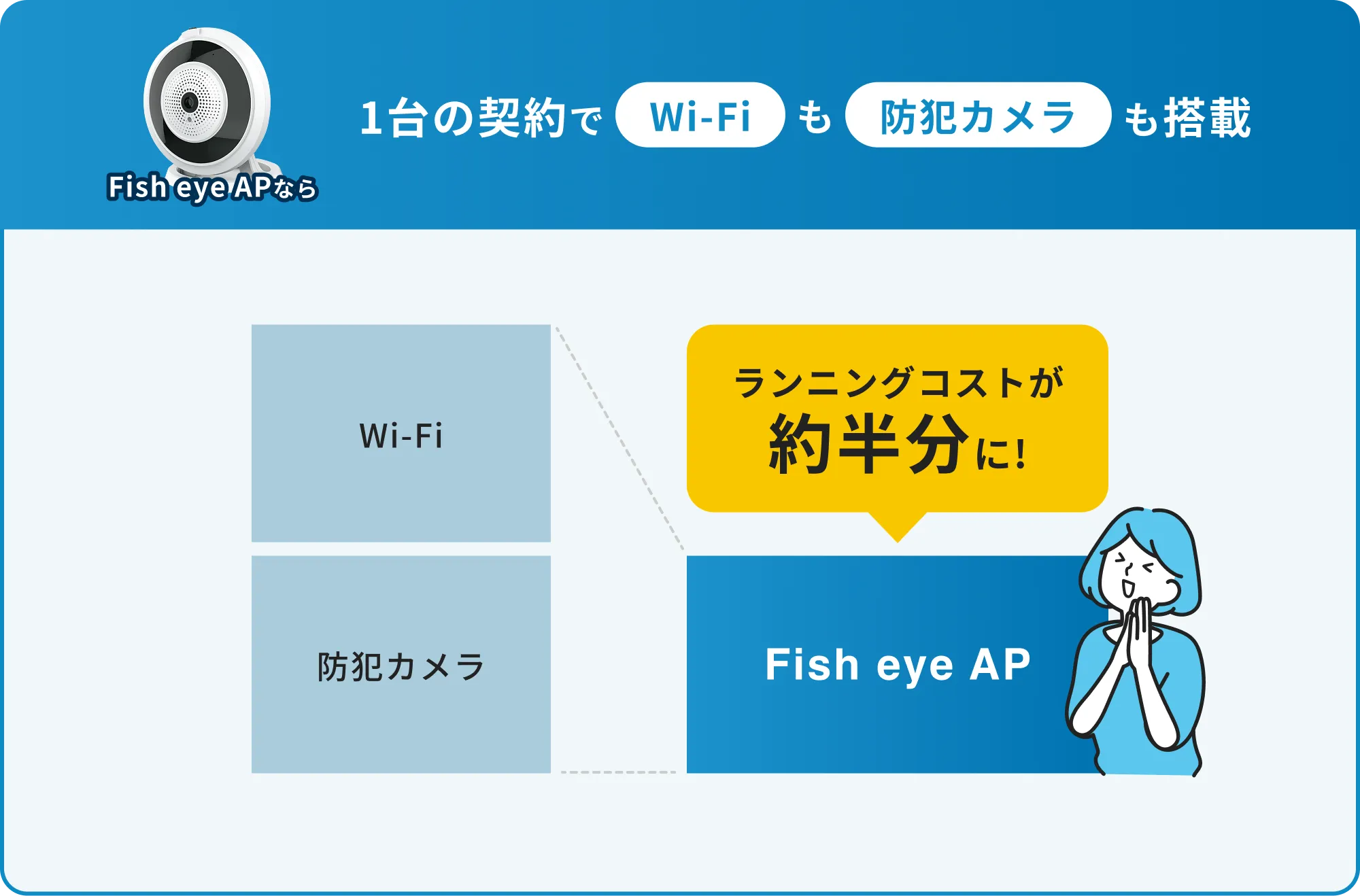 目立たないデザインで店舗やオフィスの景観を損なわず、少ない台数で広範囲を網羅してコスト削減にも貢献します。