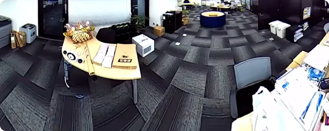 魚眼レンズでの撮影はフロア全体を広く見渡しながら、全方位撮影が可能です。