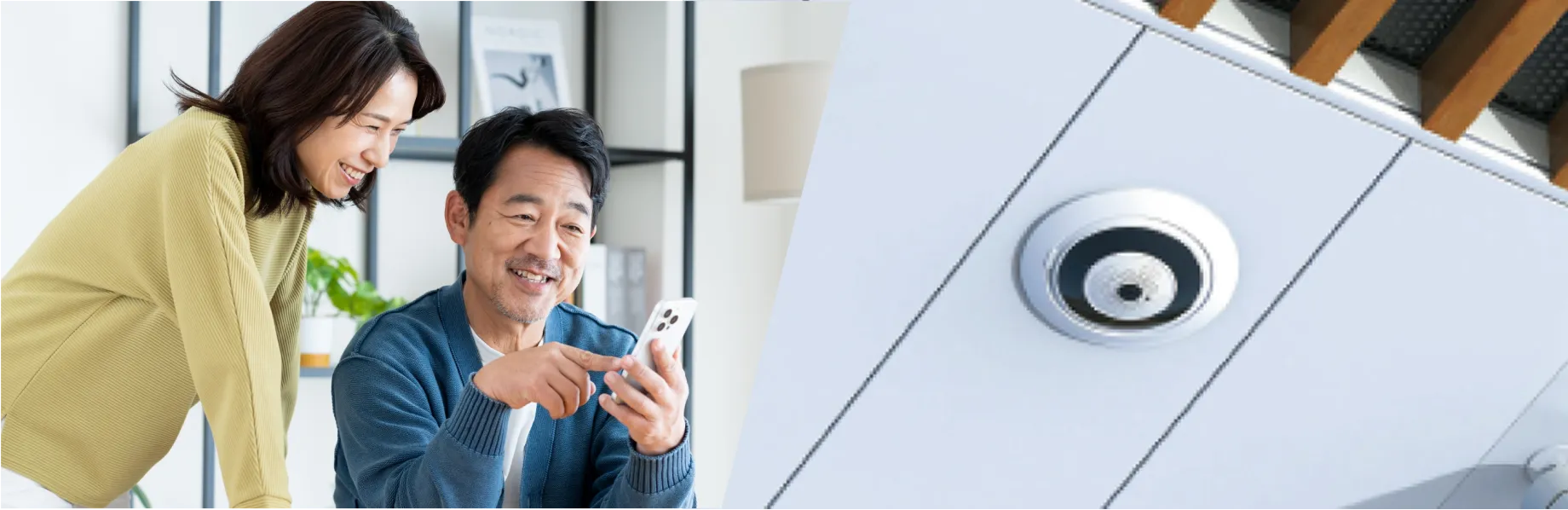 天井埋め込みタイプなら360度の広範囲をカバーし、死角が生まれないように全方位を監視します。